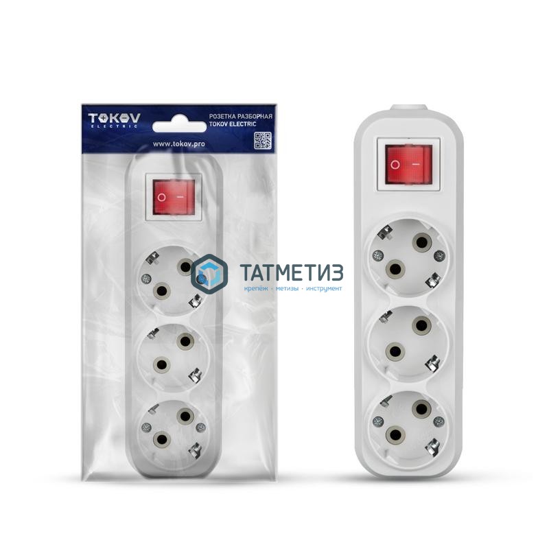 Колодка удлинителя 3-м с/з, АВС-плас 16А с выкл.бел. TOKOV ELECTRIC