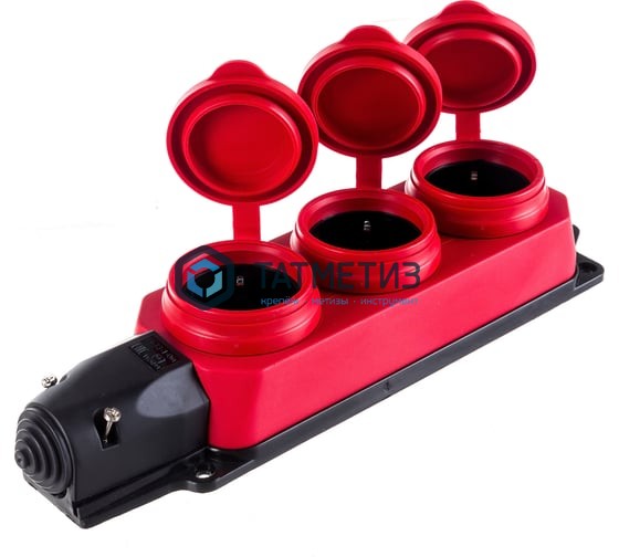 Розетка (колодка) 3-м Омега РБ33-1-0м, КРАСНАЯ, IP44 каучук ИЭК