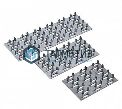 Пластина изготовлена из оцинкованной стали толщиной 1,2 мм методом холодной штамповки, зубцы имеют высоту 8 мм.