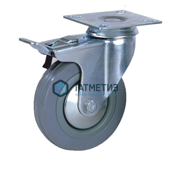 Колесо поворотное с площадкой и тормозом серая резина d 100 мм | В наличии |